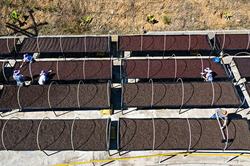 The fermented coffee cherries were then laid out to dry on patio for 48-72 hours, and then finished off in one of Buena Vista’s ‘stationary box’ (or coco) dryers, until it reached 11.5% humidity in a process that takes around five days.