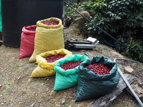 Pickers from the Samaipata community carefully handpick the coffee at Floripondio every day during the harvest. Selective picking is extremely important for special micro-lots like this one, to ensure the sweetest cup. The Rodríguez family has found that harvesting the very ripest (almost purple) cherries result in the most complexity and distinction in the coffee.