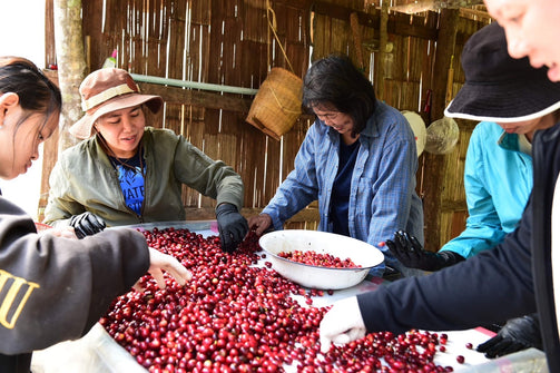 All the coffee cherry is handed-picked and this particular lot undergoes the washed processing. After harvesting, the coffee cherry was then washed and grade by using clean water from nearby river. Then, following by 24 hours fermentation without water in the sealed tank. The coffee cherry then pulped and the parchment went through the second fermentation for another 24 hours. When it reached the desired pH level, it rinsed with water to remove any remaining fruit and moved to the drying table under the parabolic roof covered with shading net to reduce the strong heat from the sun. Once the moisture reach 20%, the parchment then transfer to the rest bed. The total time of drying was 15-20 days depending on the weather.