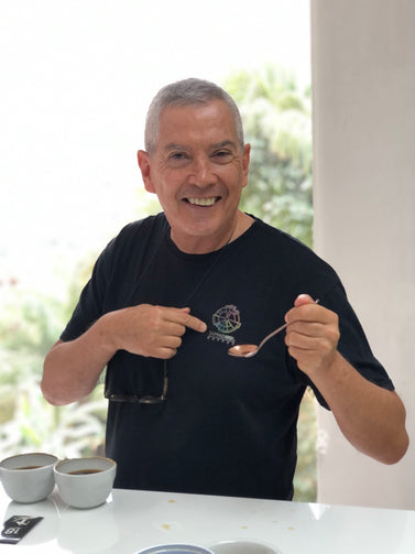 For this lot, Buena Vista Manager and fermentation expert Adrián Silva prepared a solution with a carefully calculated level of the harvested bacteria or yeasts, and added it to the wet parchment as it was placed in sealed stainless steel tanks, catalysing a controlled fermentation. The team at Buena Vista made sure the lid remained shut for the full period of fermentation, to ensure no oxygen touched the cherries and that the punch-like, boozy aroma remained trapped inside.